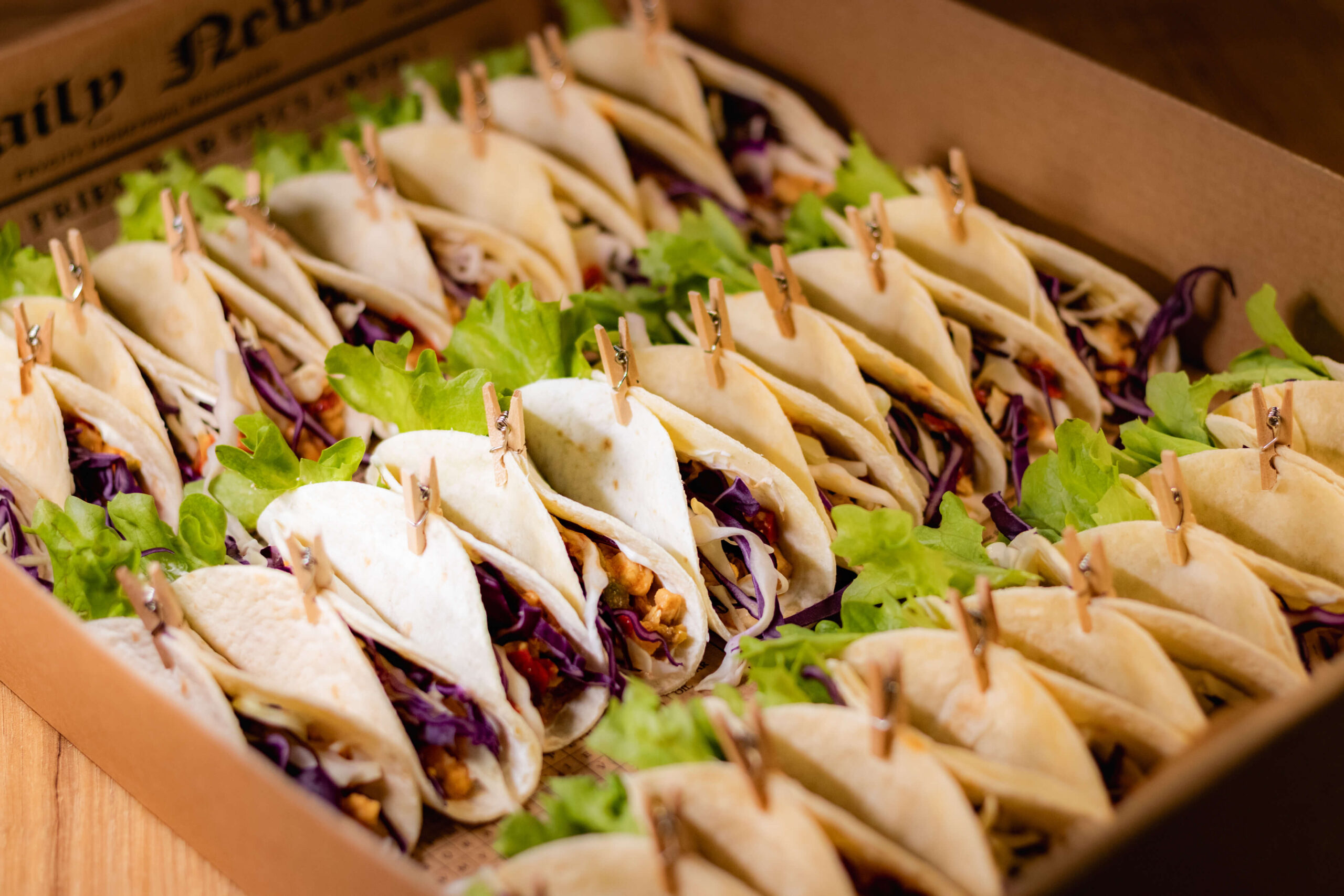 Sočni tacosi z nežnim piščančjim nadevom in papriko, oviti v mehko pšenično tortilijo ter dopolnjeni z namazom iz čičerike in pisanim zeljem. Okusen in barvit grižljaj v mehiškem slogu.